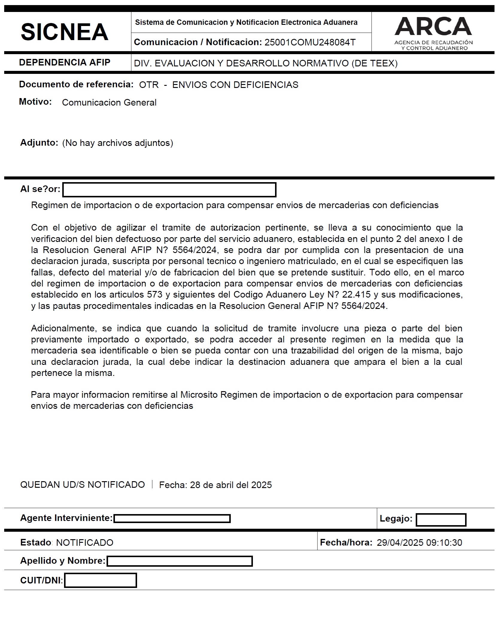 Importador / Exportador: Informamos que fue recibido un nuevo SICNEA enfocado en los procedimientos establecidos por los artículos 573 a 577 del Código Aduanero, referidos al régimen para compensar mercaderías con deficiencias, ya sea en su ingreso o egreso del país.